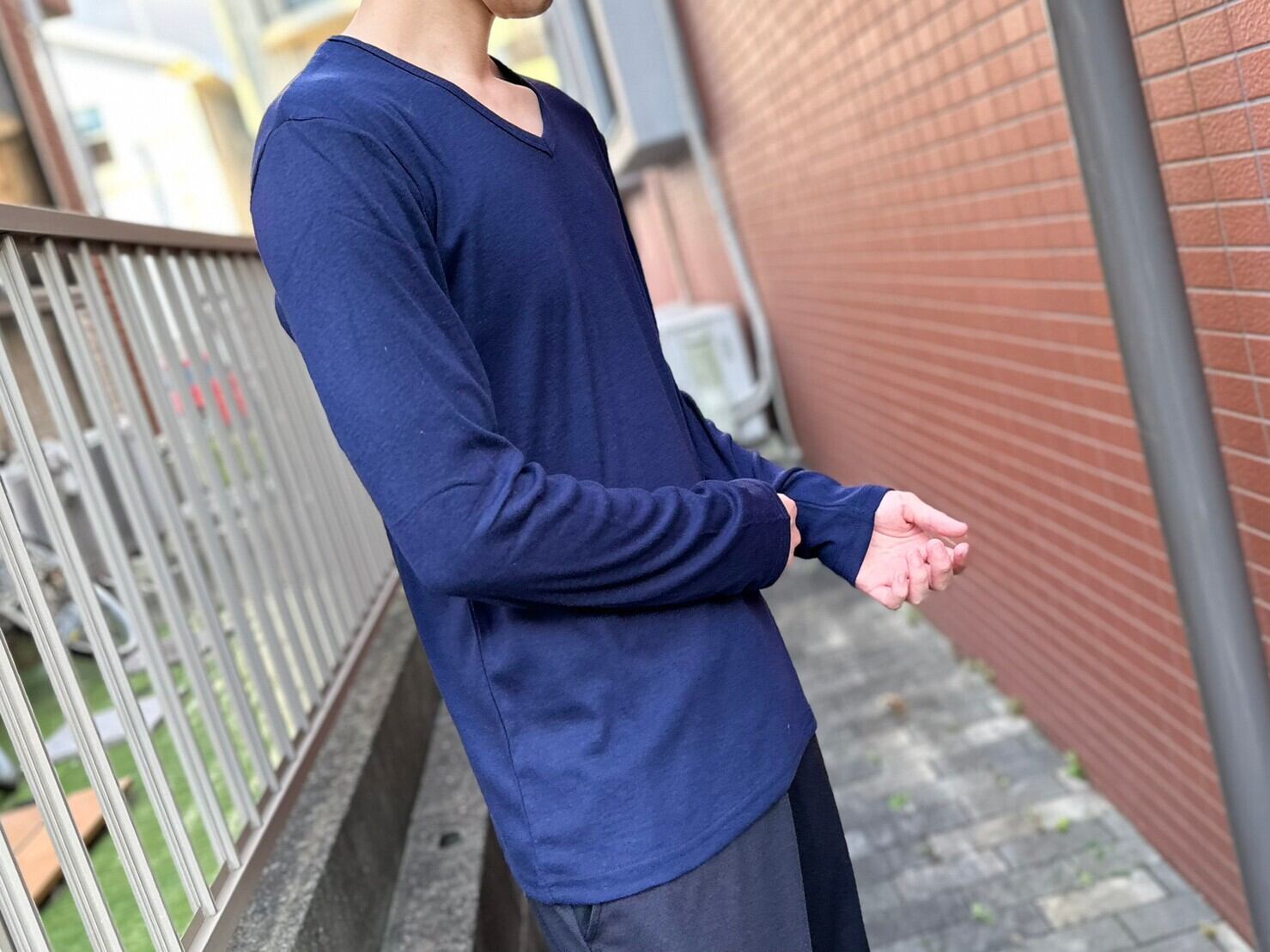 フライスカットVネックロンT NAVY